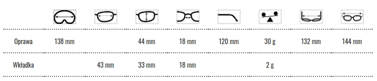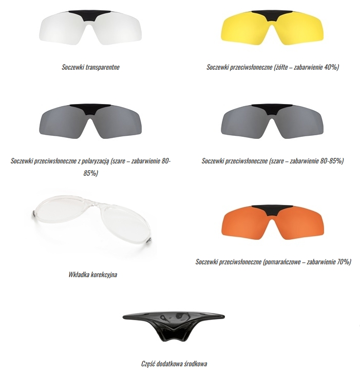 Okulary wyposażone są we wkładkę korekcyjną o krzywiźnie bazowej 6 do bezproblemowego montażu soczewek korekcyjnych.